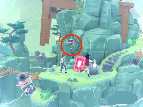 4、继续前进,让提灯感应到转过来的黄莲花拿到亮点,然后把亮着的提灯放在如下图所示的【灯座】上再继续往前走。在【灯座】停在里终点第三个灯座基的地方拿走提灯,再提灯放在第二个灯座基的位置继续前进,然后再终点前拿走提灯就能去终点点灯了。