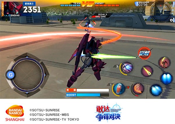 收录有十余部敢达系列的机体,忠实再现了宏大世界观中多样的武器设定。表现在游戏中,更是形成了丰富多彩的射击技能。不同的机体设置有不同的射击型武器,按压屏幕中的「普通射击键」便能发射主射击武器的攻击。建议事先了解并多多熟悉所拥有机体的射击性能,能够对完成未来的对战与任务有着莫大的帮助。