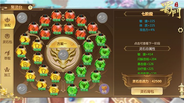 聚灵台另一玩法便是灵石加工,各位蜀友可通过消耗一级灵石进行加工,灵石加工不仅可提升玩家战力,加工不同颜色槽位的灵石也会带给玩家不同的属性加成,实在是蜀友们提升战力,跻身大神之列的一大途径。