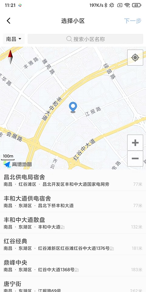 3、选择或搜索小区位置;