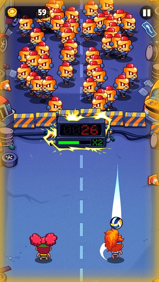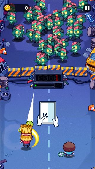 可能有的小伙伴迷惑了:发球?不是打僵尸的吗?没错,是打僵尸,但是我们的英雄使用网球作为武器的哦。玩法就是像打网球一样,在我们第一次点击了屏幕之后,咱们的英雄就会向僵尸打出去一个网球,然后直接一击制敌,消灭一个僵尸。不过,在消灭了一个僵尸之后,网球就会弹回来了,这是我们就需要根据网球是弹到左边去还是弹到右边去,来决定点击左边屏幕还是右边屏幕,然咱们的英雄做出推挡动作,把球又给打过去,然后在再一次消灭了一个僵尸之后球又弹回来,然后咱们又继续点击屏幕把球给打过去,不断循环。