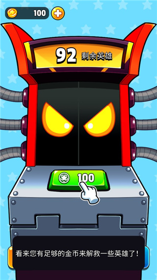 2. 闯关解锁英雄,通过关卡得金币,前往恶魔机器解救更多英雄战斗。