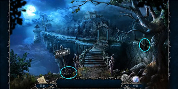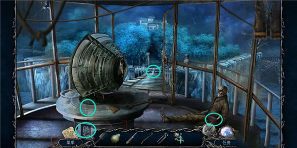 6、用钥匙打开花园右边的木门,然后进入小木屋拿走门口右边桌子上的「撬棍」和抽屉里面的「虎头钳」。点击屋顶上的猫头鹰达成5/22成就【侦探】,接着使用撬棍撬下篱笆上的「木板」,然后来到灯塔大门前将木板放在吊桥上。