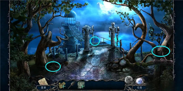 2、到灯塔大门前拿走门下面的「雕像头」,再点击左边的玻璃瓶达成1/22成就【侦探】。接着回到别墅门口拿走门旁边挂着的「皮筋」,然后和右边的树干、雕像头组合成弹弓撞破铁门,最后点击草坪上的雕像达成2/22成就【侦探】。
