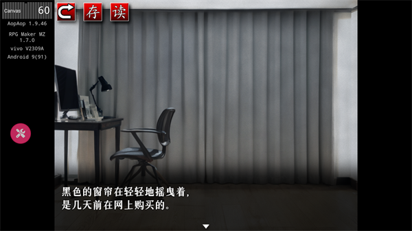 2、操作提示:滑动屏幕切换视角,点击场景元素互动(如电脑、窗帘、手电筒等)。