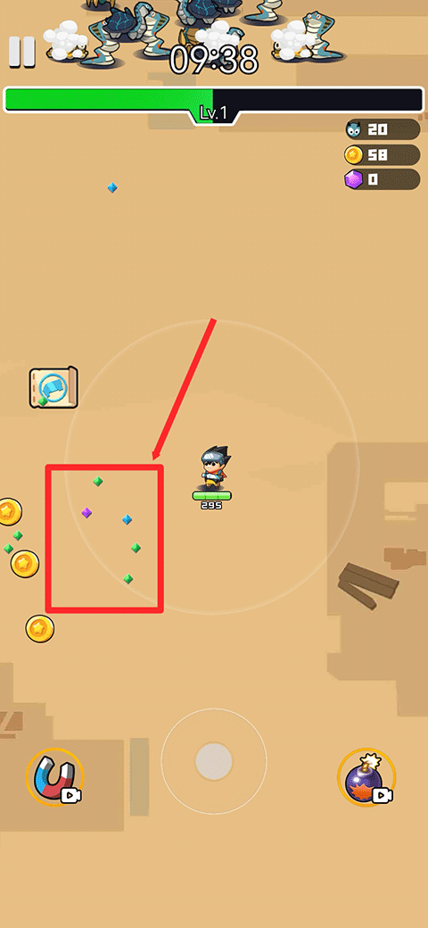 4、击杀敌人后会掉落很多小方块,这是升级等级的必备物品
