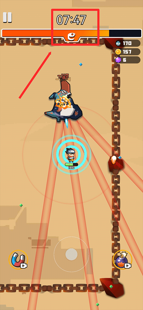 3、挑战开始时,玩家将通过在屏幕中滑动来操控角色的移动,当敌人进入攻击范围内角色就会自动射击