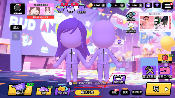 1、打开BUD来到游戏首页,点击下方编辑形象选项。