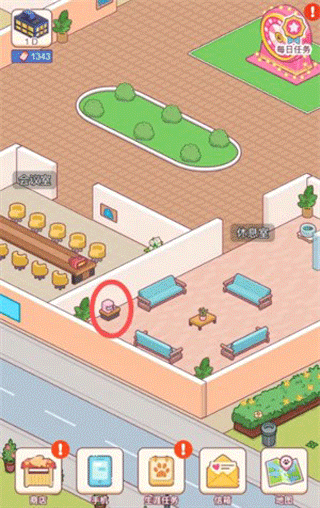 1、进入主界面,找到休息室,点击任何一个区域进入。