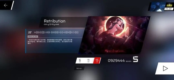 于是我们正式走上正确的道路!在打这个曲子的过程中出现了烟花的UI表演,似乎充满了希望。歌曲结束后,我们又再一次进入了Retribution的谱子。