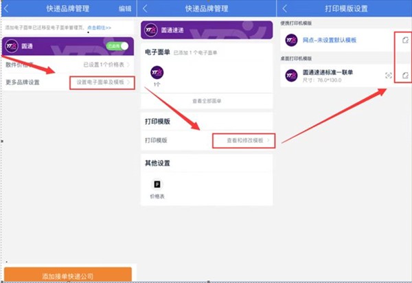 添加好快递品牌后,在相应的快递品牌处点击【更多品牌设置】,在【电子面单】处前往添加电子面单类型。