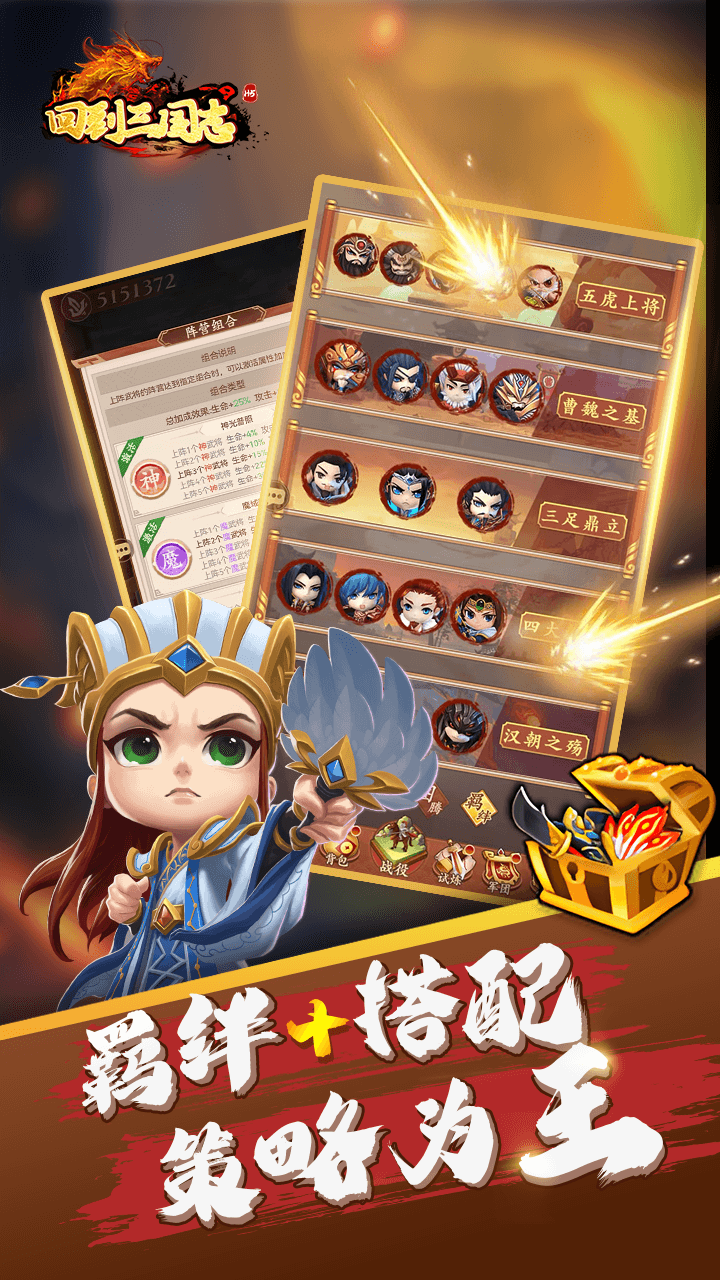 回到三国志H5是一款非常好玩的三国类策略对战游戏,为玩家带来了超多经典的武将让玩家可以自由的组建搭配阵容,让玩家可以带领自己的队伍战争三国世界,操作简单挂机放置即可轻松畅玩,主要考验玩家的策略和智慧,快来下载体验吧!