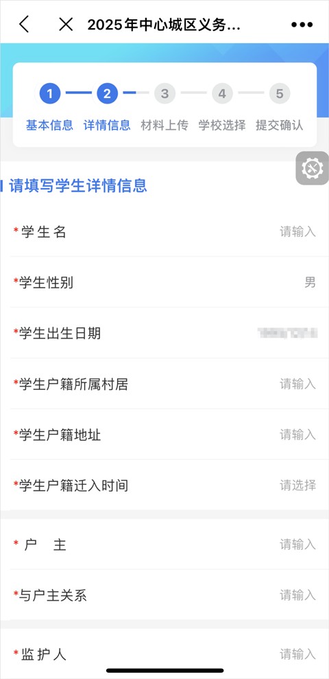 6、进入后完善学生详情信息。打*号为必填项,填写完毕后点击“下一步”。