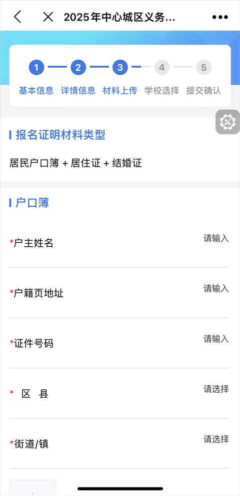 7、按照要求手动填写户口本信息,并按照要求上传所选择的证明材料。
