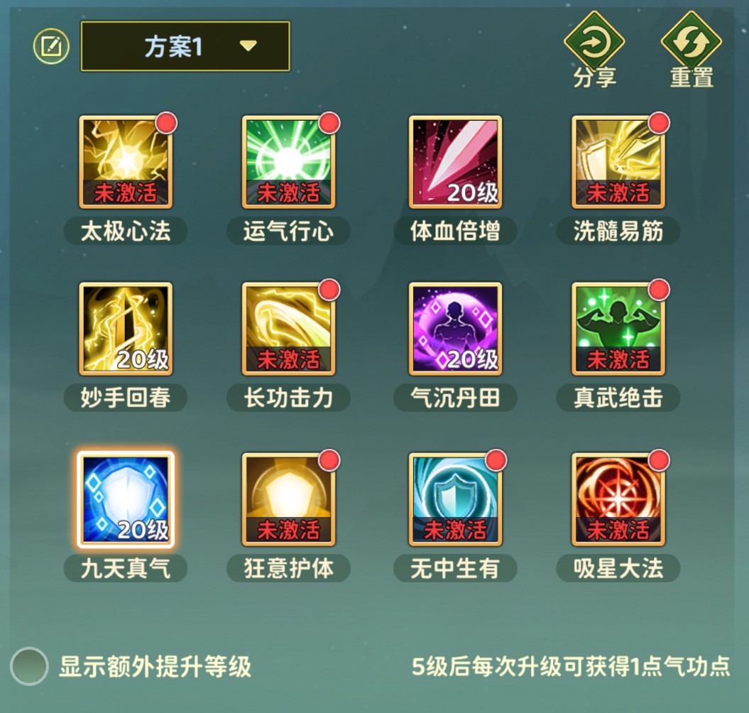 二转:必须点满转攻为守(概率减免伤害),转攻为守可以提高站桩输出伤害,以及优先加点气沉丹田(提高防御和生命)气沉丹田前期可以用多余的气功点增加,与金钟罡气,狂风万破搭配使用,但是后期一定要点满,狂神降世(增加愤怒值)狂神降世更适合喜欢与人切磋的少侠,大家可以根据具体情况安排;