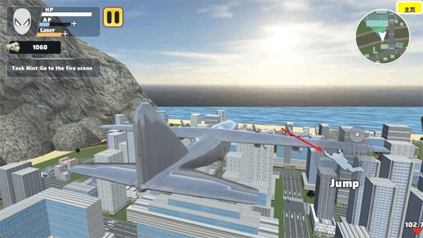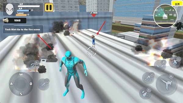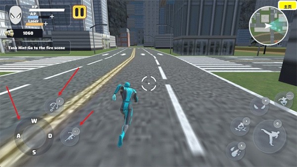 2. 操控摇杆移动,用绳索和加速按钮提升机动性。