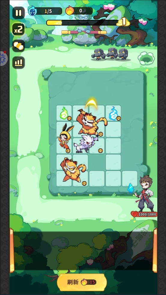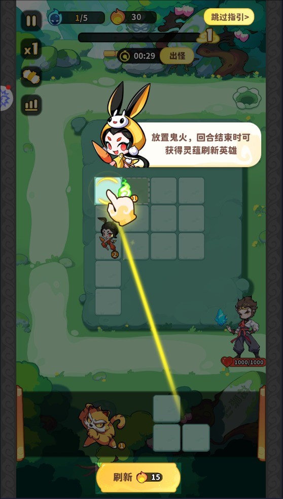 2、放置鬼火,回合结束时可获得灵蕴刷新英雄。