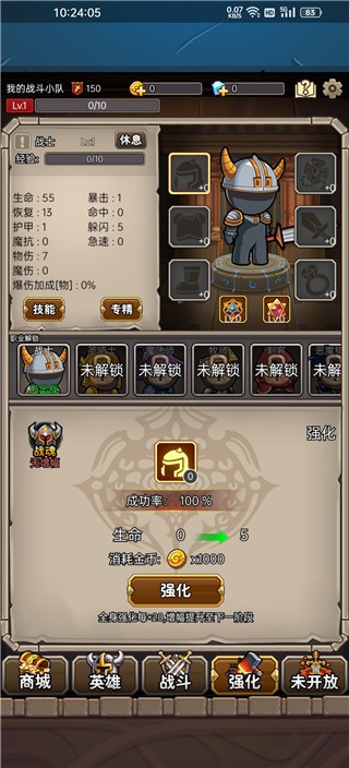 6、游戏里有两种货币:金币和钻石,看视频是钻石唯一获取渠道,前期商城里东西,不需要买前期能攒多少钻石就攒多少,后期有大用。金币全拿来强化装备,无其他用途