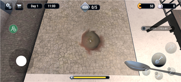 4、同时使用道具开始挖掘,挖掘下面可能有物品。