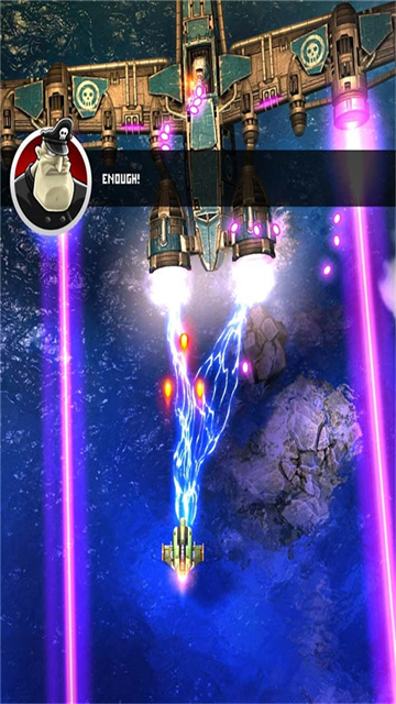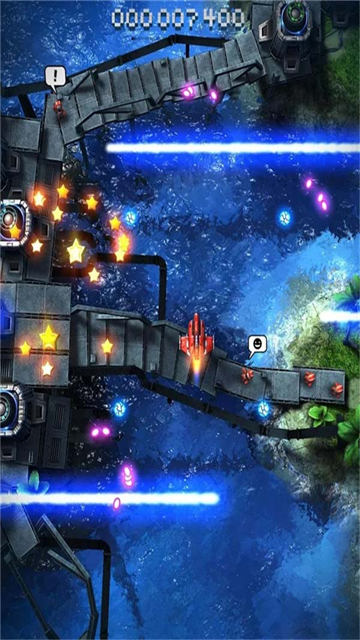 每个关卡最后都会有一个超强大的BOSS,第一关是一艘很大的战舰,玩家需要将战舰上的所有炮都摧毁即可将战舰打败过关。
