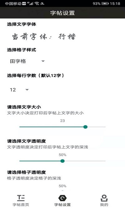 3.个性化设置:用户可自由输入文字生成专属练习页,自定义字帖内容、格子样式、字体颜色与大小等。