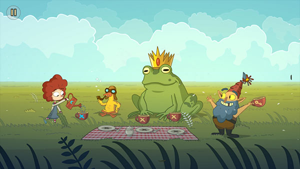 2、然后我们可以看到一个草坪上的青蛙,点击它,会出现小女孩。