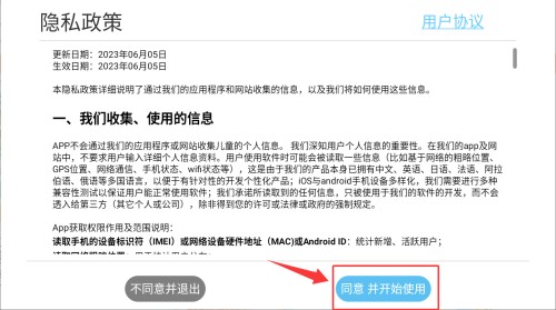 1.启动应用:打开App,点击隐私政策页面的“同意并开始使用”按钮。