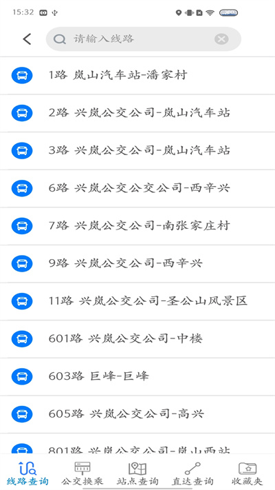 2.查询线路:点击搜索框,输入公交线路名称或站点,选择要查询的线路。