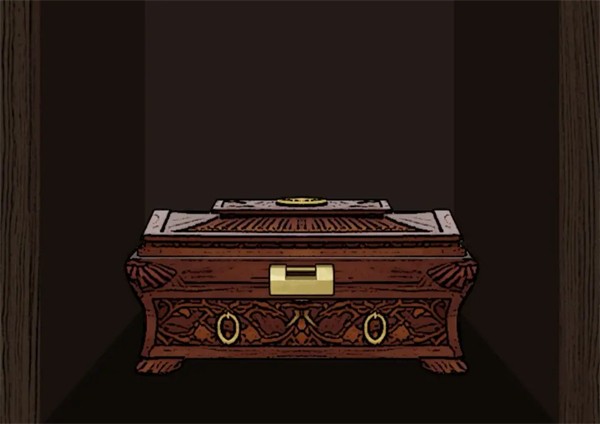 消除两波等重量砝码(9和3、6;7和2、5,随便都可以),出现一个鬼脸穿的戏服与它颜色一样才可以,不然直接死亡(这里我一直选的都是绿戏服,不过鬼脸红绿都出现过,看运气了),用钥匙打开盒子,获得贡品清单2。