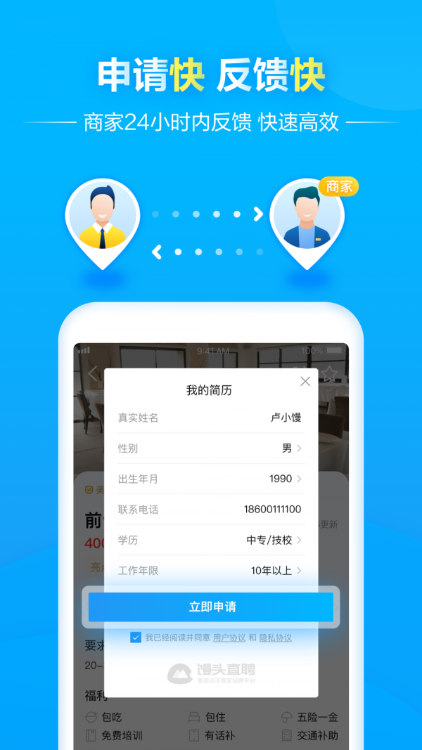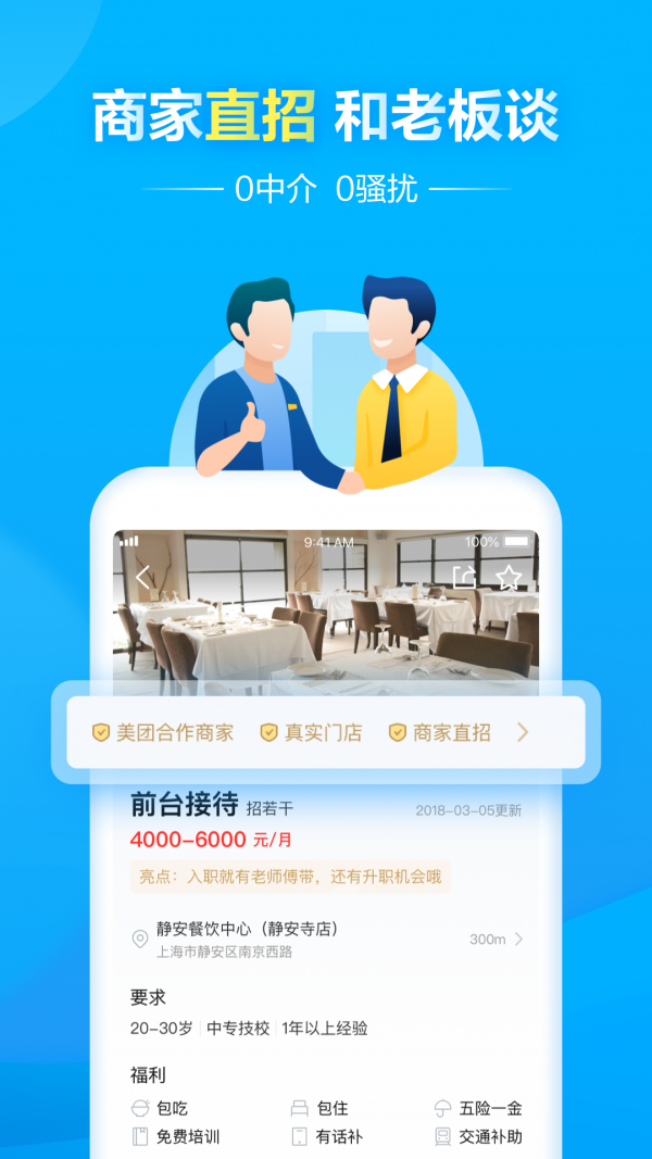 2.真实商户认证:所有职位来自美团点评合作门店,商家信息可查,杜绝虚假招聘,保障“三真”承诺。