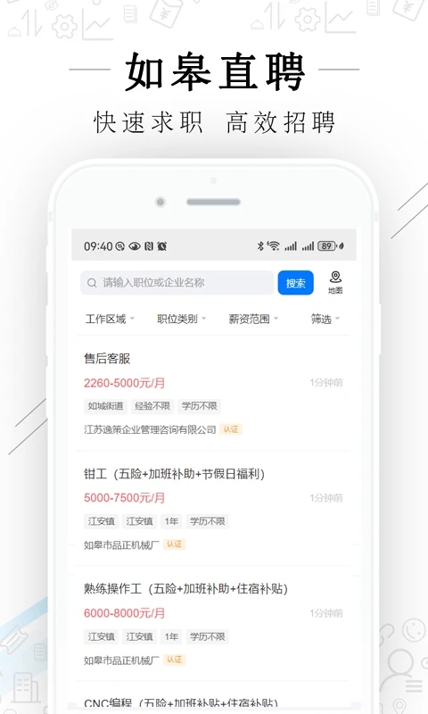2.名企招聘:汇聚如皋地区知名企业,如思源电气、江苏力星等,提升求职者选择质量。