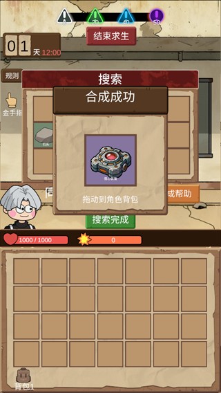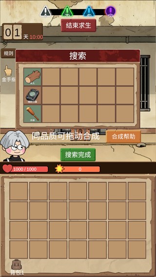 2. 背包合成功能,相同品质物资可合成,概率得更高品质道具。
