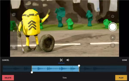 音频编辑器:可修剪音频片段,设置淡入淡出,更改音量或添加趣味音频效果(如外星人、机器人或旧广播电台音效)。