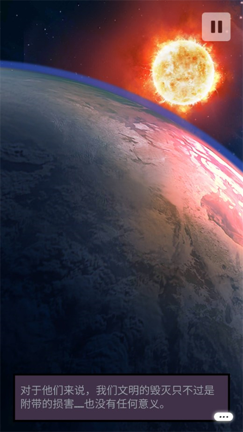 游戏的玩法就是在剧情进行的时候,选择发展的方向,和面临抉择时做出自己的选择。点击开始进入游戏,这时候会出现一段剧情动画,告诉我们游戏的起因,也就是我们上面所说的游戏背景,经历了百万年的岁月后,我们被一片自称为新美洲的地方的人所救醒,接下来就要开始我们的选择了。