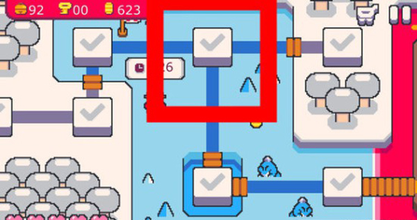 还有些地方有冰屏障和石头火陷阱,过不去的,这时候就点开商店(某些关卡也有商店),点左边最上面一个,翻到最后购买一红一蓝两只,在游戏开始时左上角“+”号处使用,红色破冰蓝色破火哦,(因为吧主铃铛都拿到了所以是浅色的)