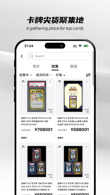 实时竞价拍卖:支持用户参与心仪卡牌的实时竞价拍卖,与全球卡牌兴趣者公平竞争。同时,平台提供设置最高出价自动竞拍的功能,确保用户不错过任何一张稀有卡牌。