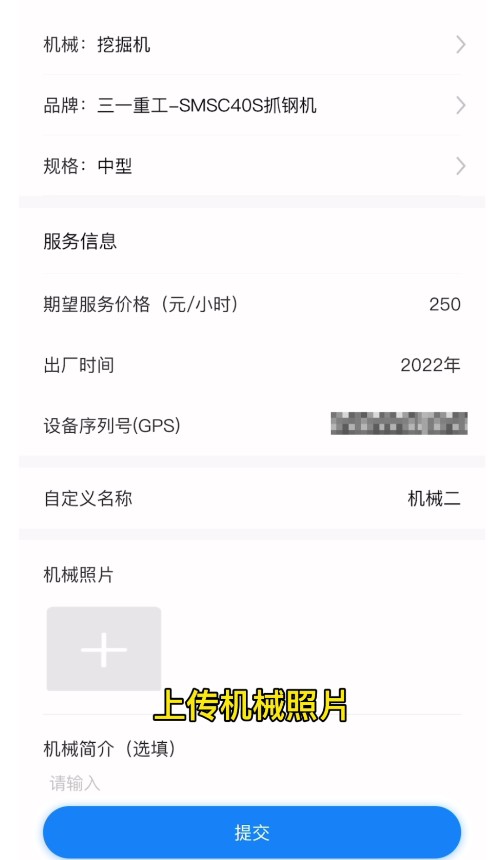 按提示拍摄或上传机械照片(需清晰显示设备外观、编号等)。