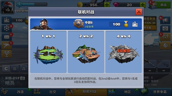 3、在联机对战中,您将与全球玩家进行自动匹配对战。在2vs2或4vs4中,您将与1名或3名队友协同作战