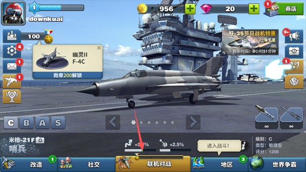 2. 参与多人对战,实时1v1、2v2、4v4在线挑战,与玩家展开激烈空战。