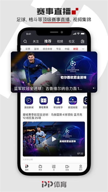 1.版权资源丰富:拥有中超、亚冠、德甲、欧冠等超50项赛事版权,覆盖全球顶级体育内容。