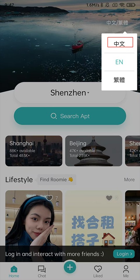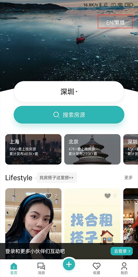 1、打开Wellcee租房App,进入首页后点击右上角的切换语言按钮。
