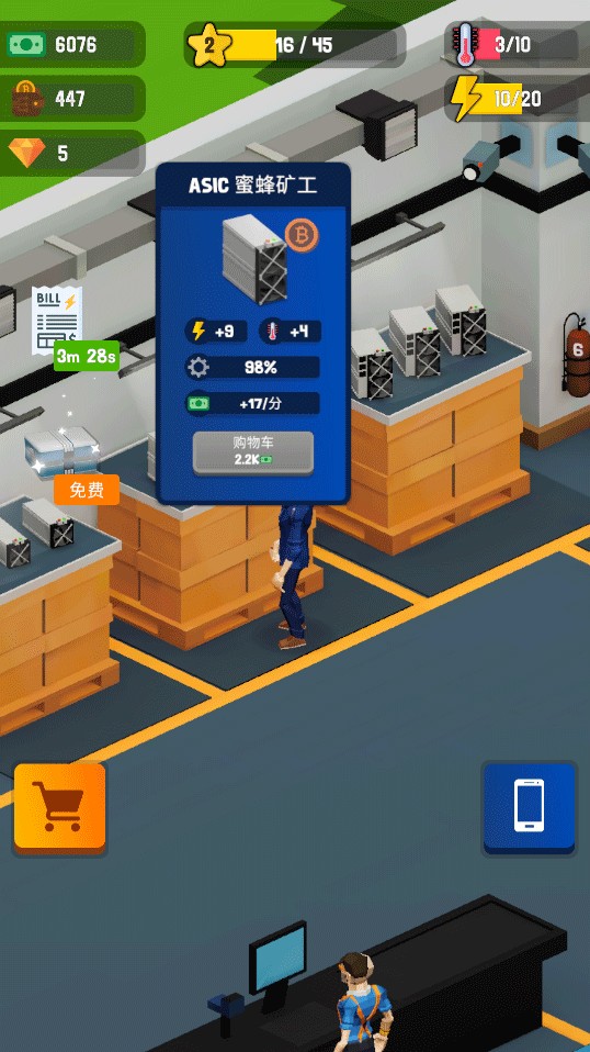 2. 升级矿工优化技术,积极体验游戏,见证帝国成长并自动化运营。