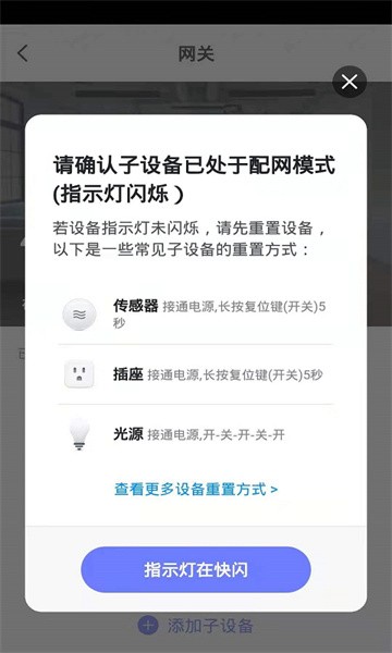确保家电已开机,并处于配网模式(通常指示灯会快闪)。勾选“确认指示灯快闪”选项,点击“下一步”。