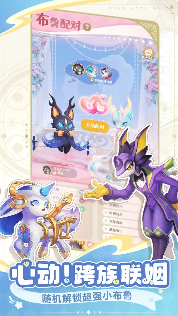 万灵之契官方版是一款全新休闲捉宠手游。游戏以拯救被暗影魔龙威胁的世界为剧情主线,玩家化身女神选定的勇者,踏上异世界冒险之旅。在天空、陆地、秘境三大领域,可收集超百种形态各异的布鲁。它们有专属进化路线与战斗定位,玩家需依敌人特性调整阵容,让每场战斗都充满策略趣味。