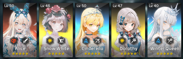 目前队伍的大致思路,T和奶妈最高练度(角色活下来才有输出,T肉起来,奶攻击力点满)