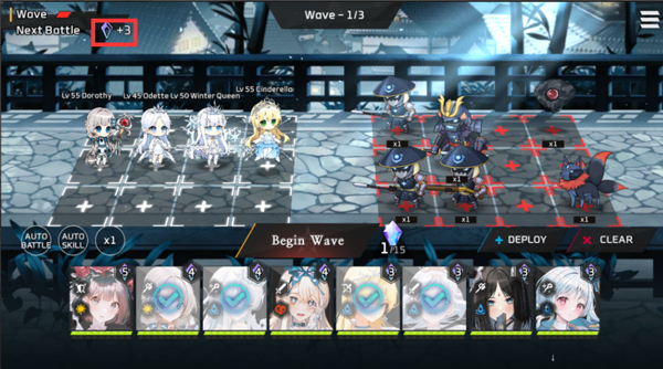 二、主线推图相关,游戏开局送15点费用,每打过一关会+3具体看图左上角