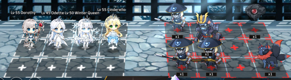 在敌方没有击退角色的情况下,站位--1排弓箭手,2排法师,3排近战,最后治疗。