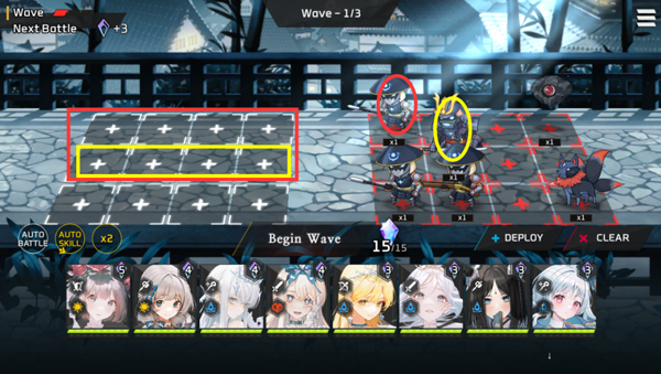 小技巧:1图的时候可以考虑,将低费用副T单抗直接送掉,给奶以及后排输出攒能量,让2图18费的时候可以下一个较为完整的主T主奶主力输出的队伍上场,开场就是技能轰炸,剩余怪数量较少时候再次攒能量。