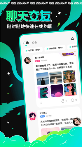 语音直播与连麦:支持用户在线语音直播,展示才艺或分享生活,同时提供群聊匹配功能,用户可通过兴趣爱好快速找到同好,开启多人语音互动。