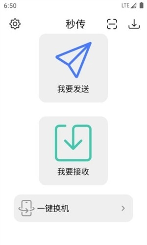 先到本站中把秒传 App 下载下来,安装到设备上后打开它。软件首页就像一个简易的操作台,有两个明显的功能入口,分别是“我要发送”和“我要接收”,方便你快速选择接下来要进行的操作。